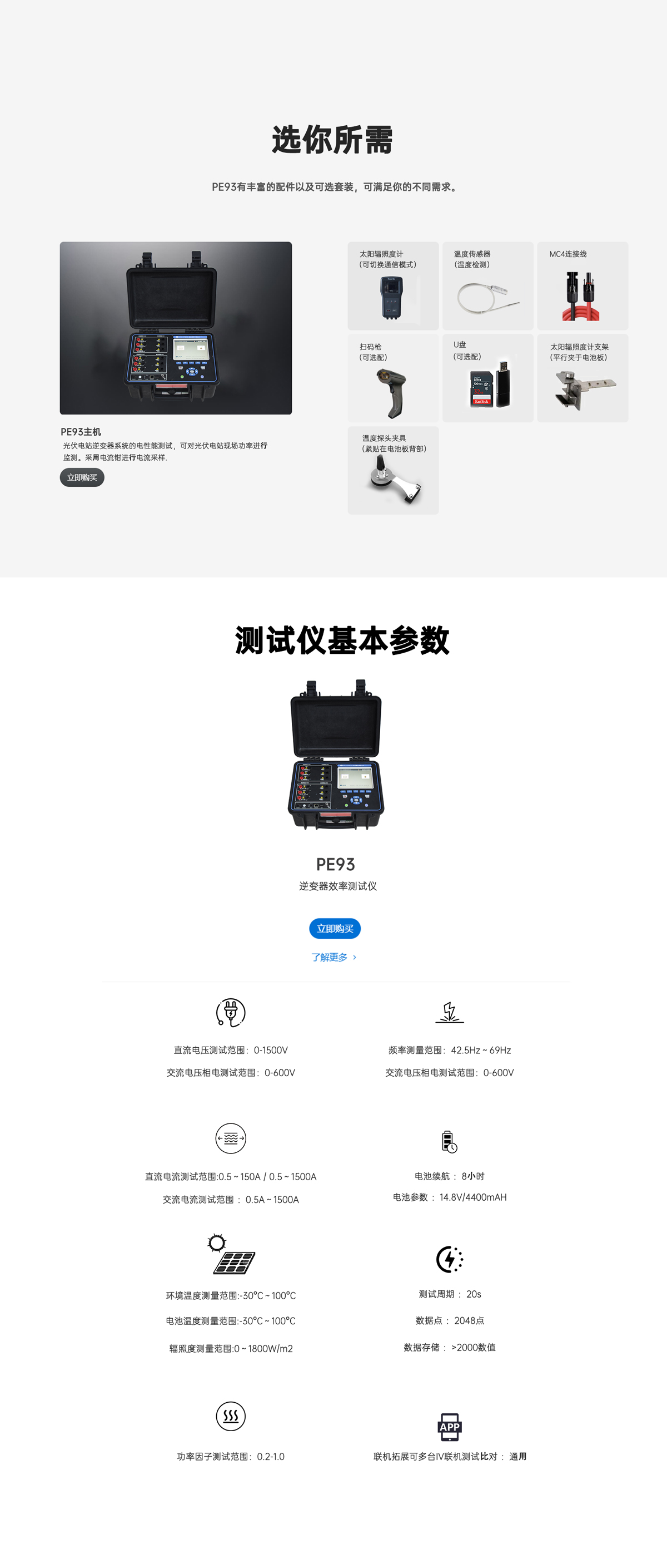 LX-PE93逆變器效率測試儀采用電流鉗進行電流采樣,能夠在電站正常工作狀態(tài)下對電站中不同節(jié)點的功率進行實時記錄分析。整機配備輻照系統(tǒng),可在電站各節(jié)點測量出準確的實時發(fā)電效率并在系統(tǒng)自動生成PR值。